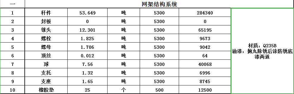 1.螺栓球網(wǎng)架結(jié)構(gòu)材料系統(tǒng)報價